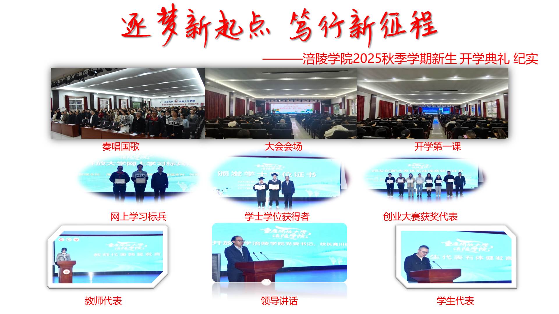 10月25日上午9:00,以“逐梦新起点 笃行新征程”为主题的2025年秋季学期新生开学典礼暨入学培训在重庆开放大学涪陵学院举行,会议由副校长王燕主持,学校党委书记、校长高川、部分在家校领导、全体教职工和200多名学生代表参加了会议,会议组织全体师生集中收看聆听了由国家开放大学校长王启明主讲《在实现中华民族伟大复兴的征程上跑出精彩人生》的开学第一课,并进行了多项表彰活动。开学典礼结束后,各教学班级分班开展了入学教育和网上学习技能培训。