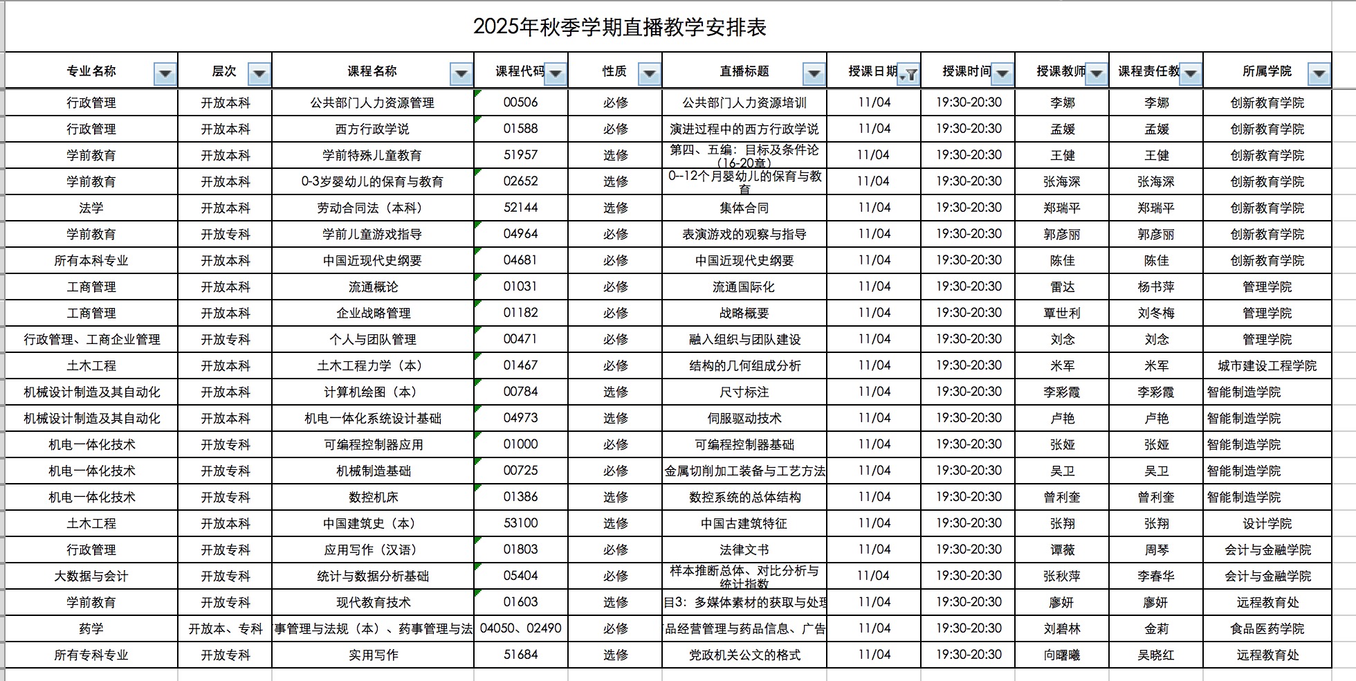 11月4日重庆开放大学直播课程